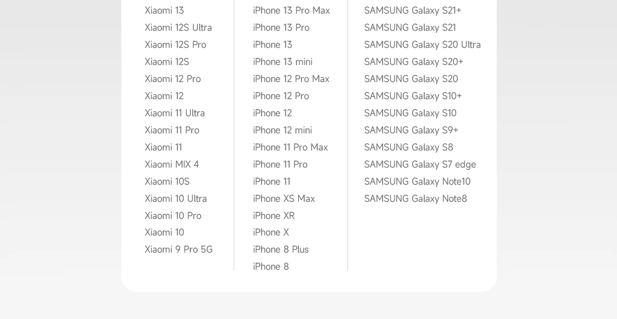 >> Phone case thickness should not exceed 3mm. If using a protective case, please ensure that there are no metal objects between the wireless charging surface and the smartphone. We recommend Xiaomi official protective cases.