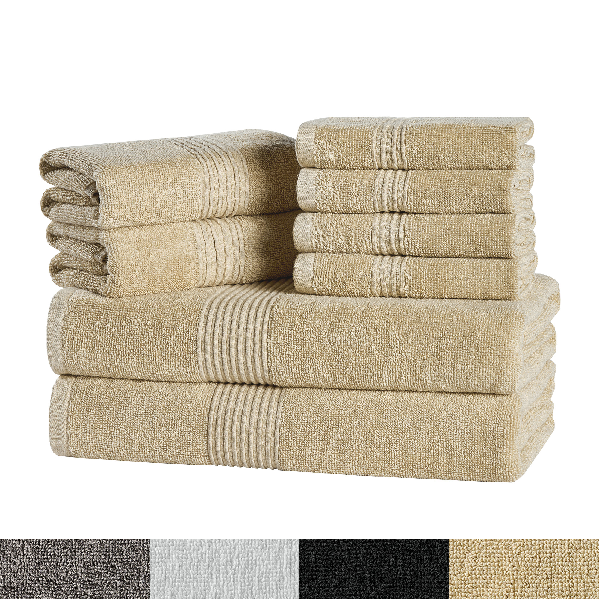 - 8-Piece Set Includes: 2- Bath Towels, 2- Hand Towels, 4- Washcloths
