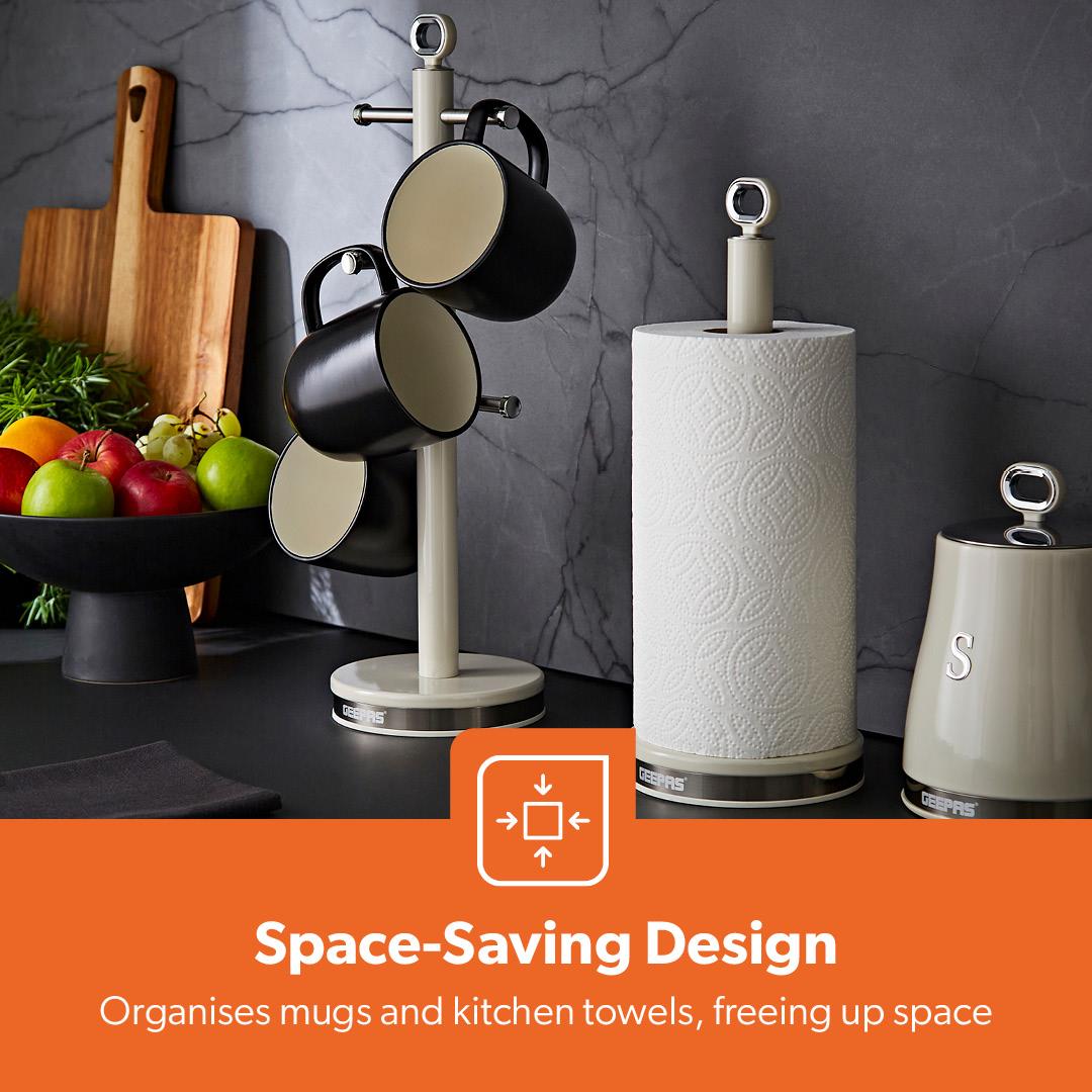 ✅ NON-SLIP BASE – Fitted with an anti-slip base for reliable stability on any surface. Protects worktops from scratches while keeping your mugs and kitchen roll holder securely in place.