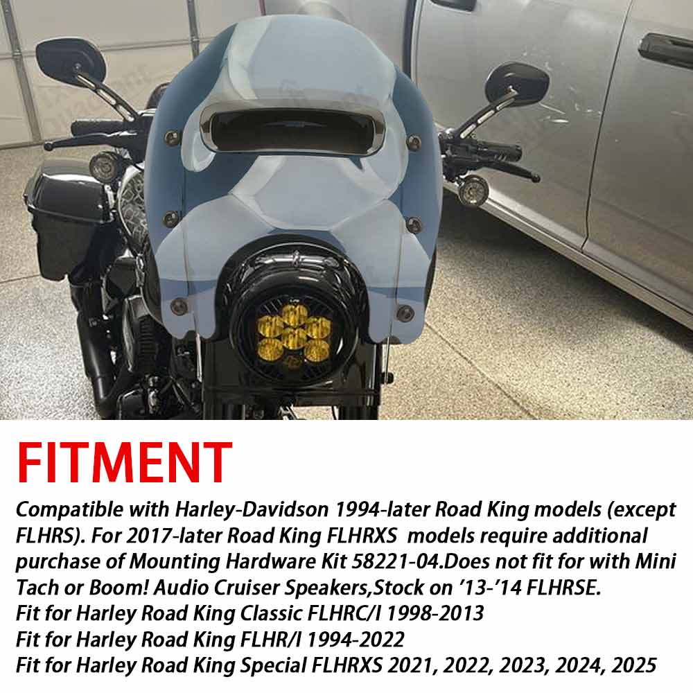 Fitment:Compatible with Harley-Davidson 1994-later Road King models (except FLHRS). For 2017-later Road King FLHRXS models require additional purchase of Mounting Hardware Kit 58221-04.
