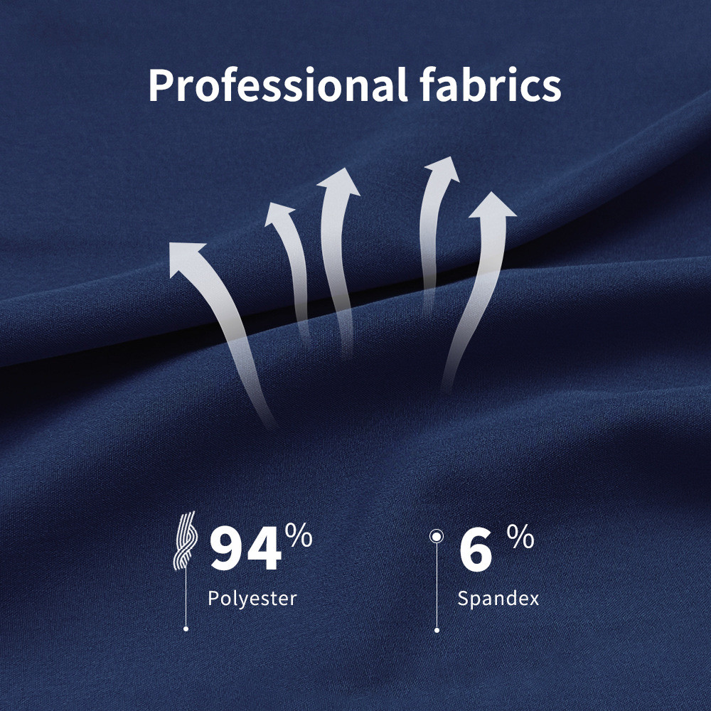 High-quality fabric: Made of 94% polyester + 6% spandex, it has excellent durability and moisture wicking properties. It is breathable, soft and skin-friendly, keeping you dry and comfortable all day long.Anti-static and dust-proof properties enhance practicality.