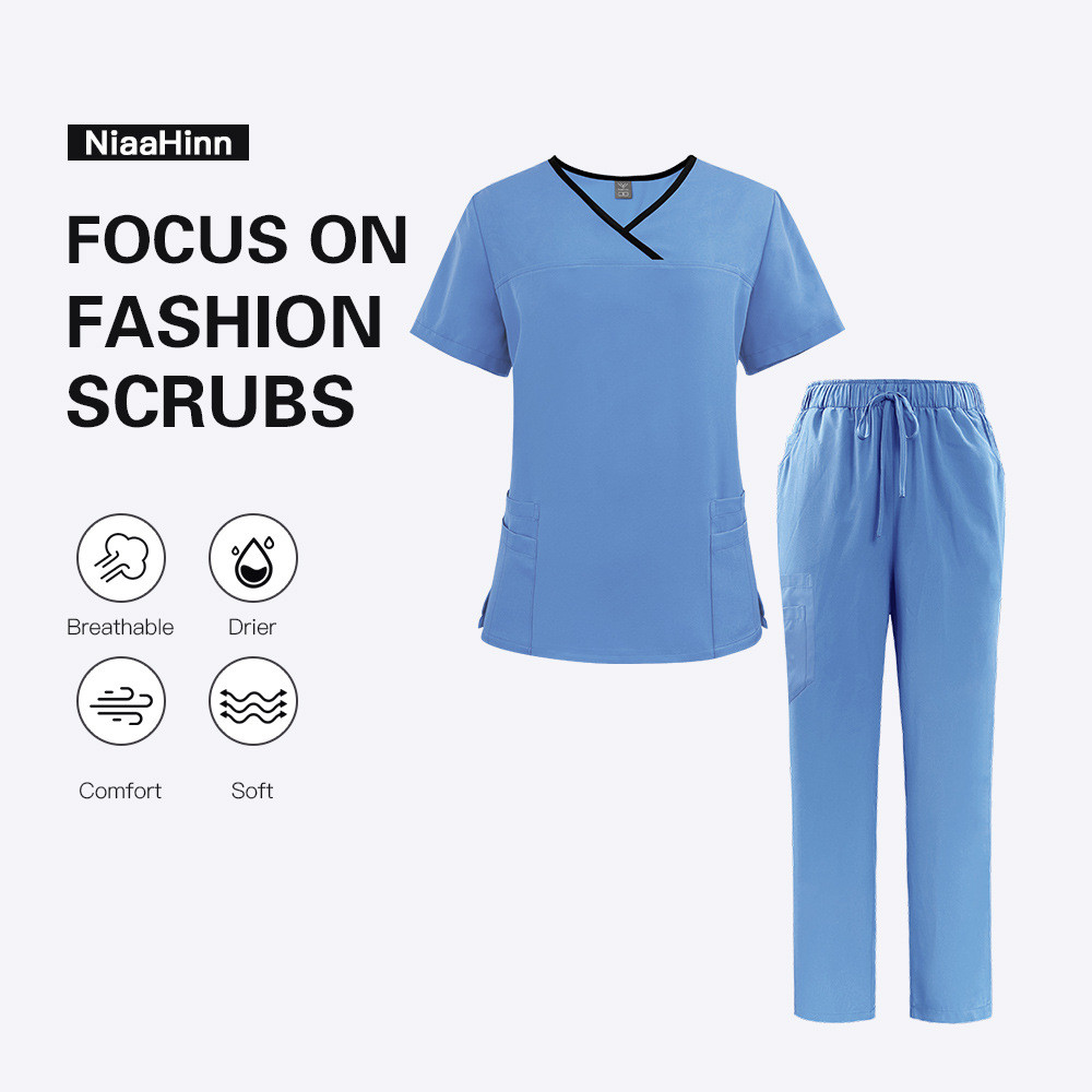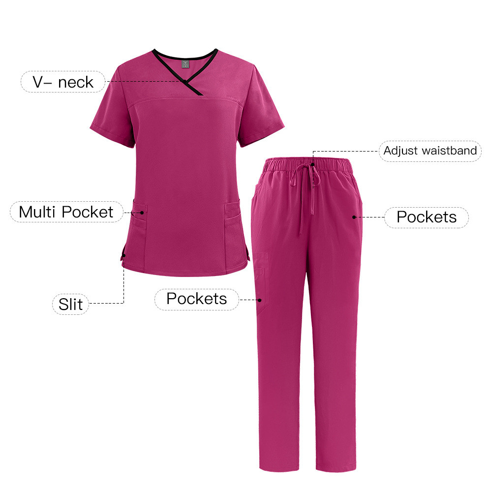 Multi-pocket design: The V-neck top combines modern style with practicality.Our medical uniform set is equipped with multiple pockets, providing ample storage space for tools and necessities, allowing you to be organized and ready for various situations.Safely store medical tools, mobile phones or necessities without affecting activities.