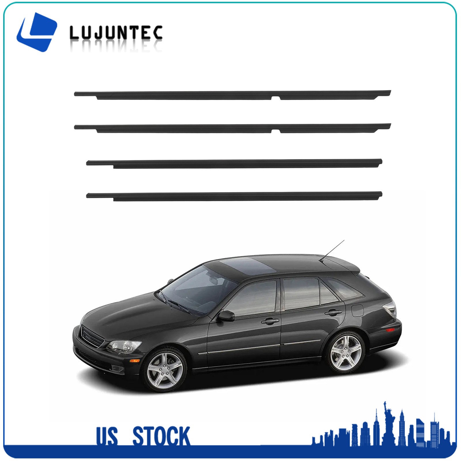 4 Fits 2001-2005 Lexus IS300 Front & Rear Window Moulding Weatherstrip Seal Belt