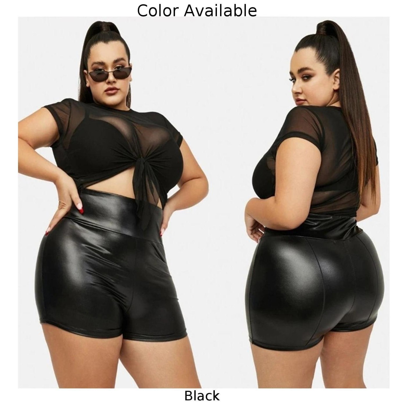 * Artikelbeschreibung: Damen Kunstleder Dreipunkt Stretch Sport Yoga Hose plus Kunstleder Shorts