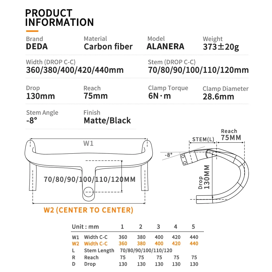 Handlebar Width (Drop C-C):360/380/400/420/440mm