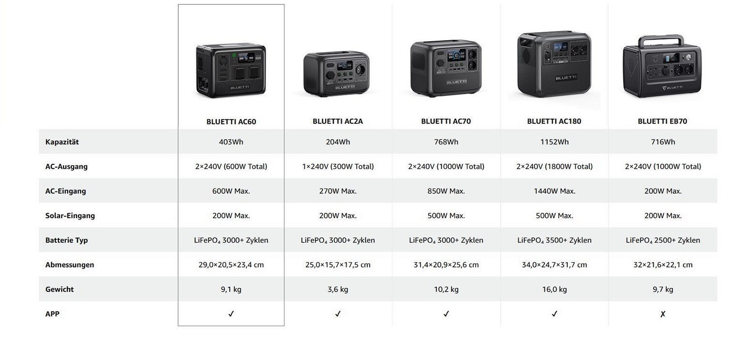 Der BLUETTI AC60 weist erhebliche Verbesserungen der Merkmale und Funktionen auf: Schutzart IP65 für Wasser- und Staubschutz, leiser Betrieb unter 45 dB, erweiterbare Kapazität bis zu 2015 Wh und mehr. Sie ist die ideale Powerstation für Ihre Outdoor-Abenteuer und die Notstromversorgung daheim.