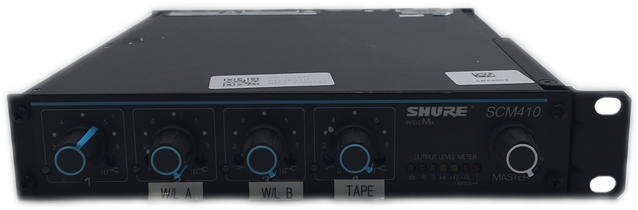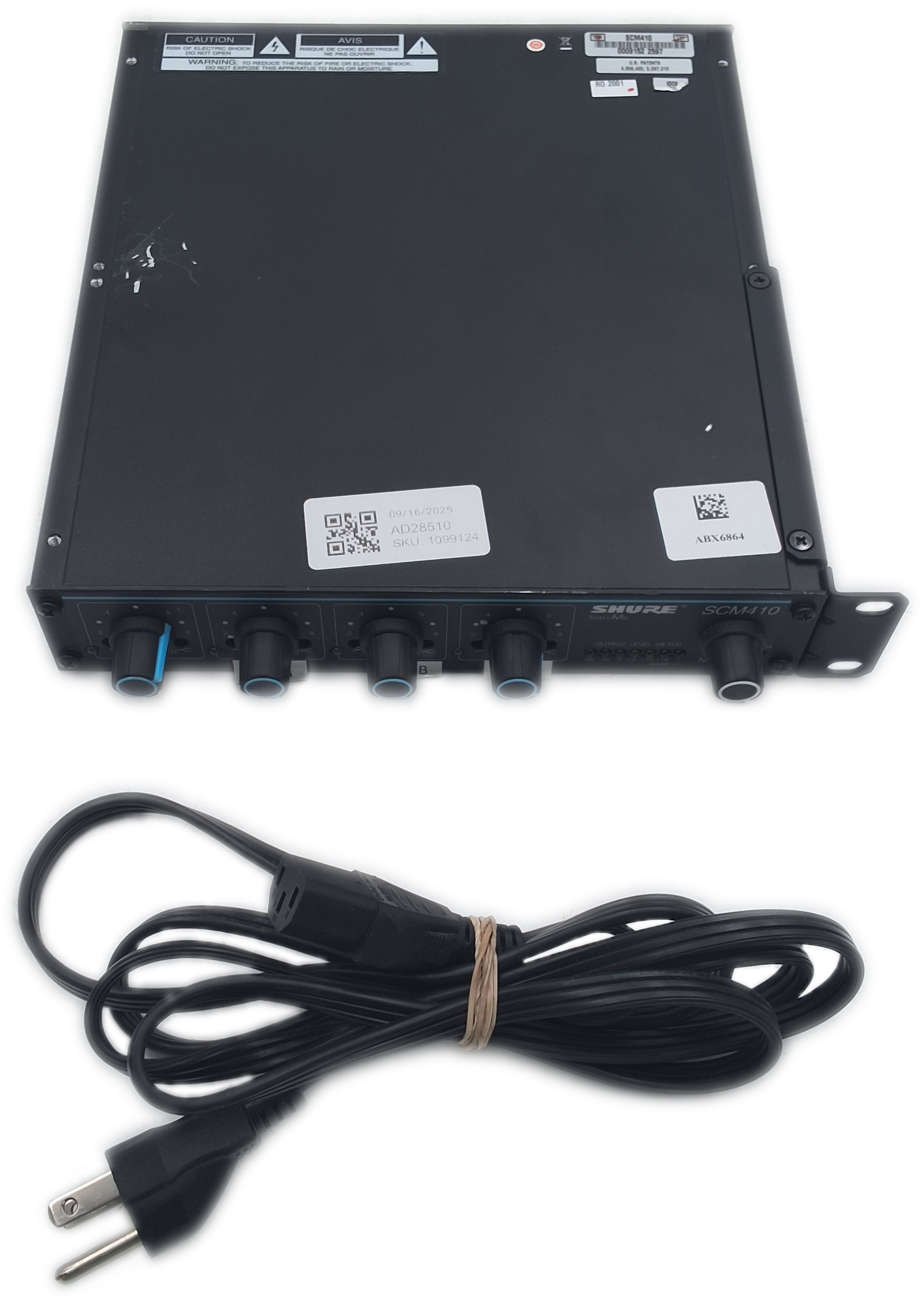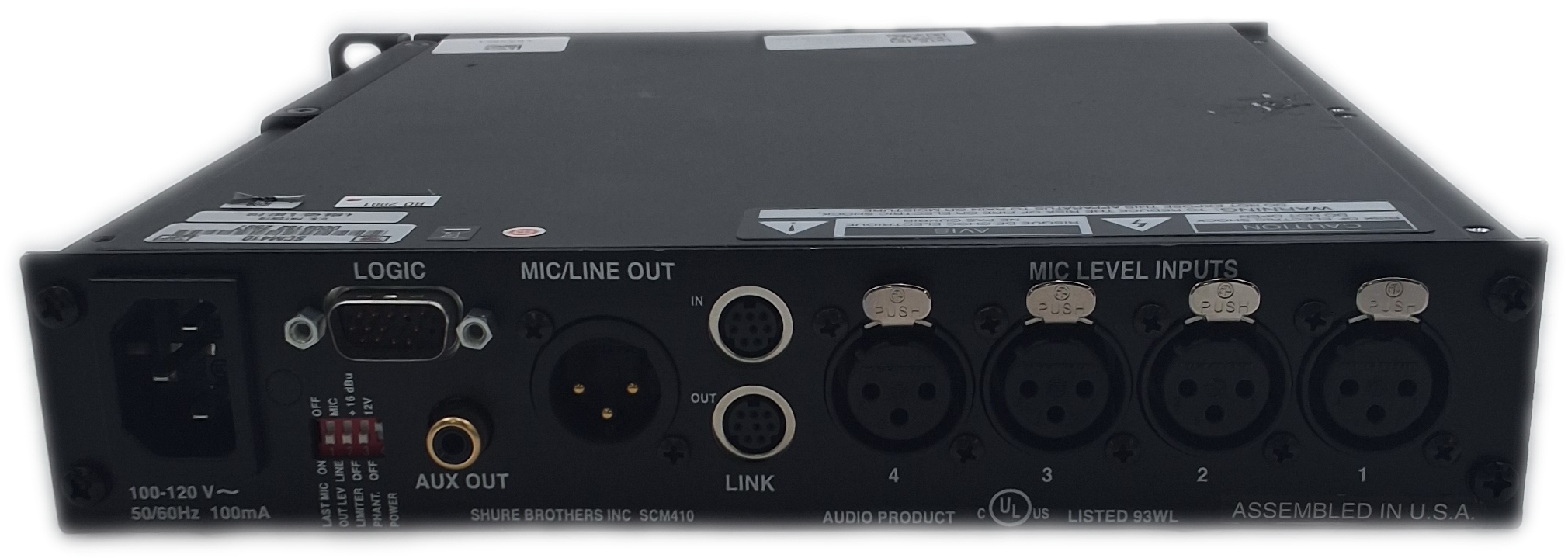Technician Notes: Shure IntelliMix Model SCM410 4-Channel Automatic Microphone Mixer *Tested*. Includes the mixer unit as shown.