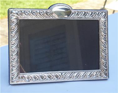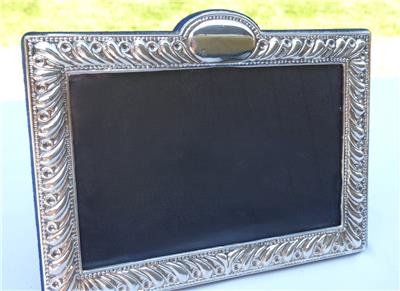 Estate Vintage Sterling Silver embossed picture frame by Silversmith and owner of 925 inc Jack Rabinovich. He named this frame Gadroon and measures 7" by 5" 5 1/2" tall at the Oval Cartouche with the opening for the photo 5 1/2" by 3 1/2". Retails for $ 120.00.