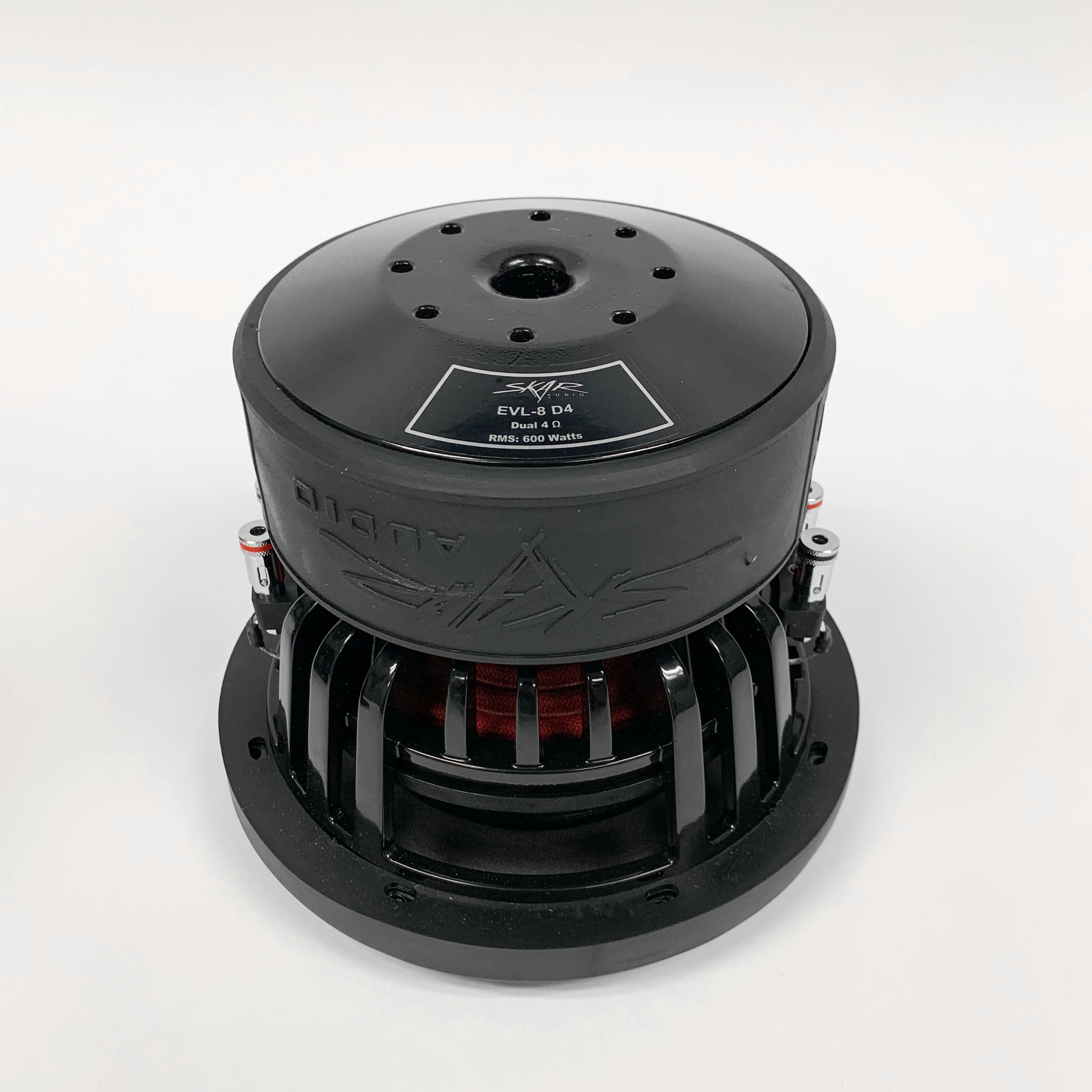 Skar Audio is offering a limited quantity of used EVL-8 D4 Dual 4 Ohm Car Subwoofers. The EVL-8 redefines the conception of low-end sound reproduction, and the certified used offering of this model is a great way to take advantage of huge savings on such a product. This subwoofer delivers truly dynamic and responsive bass, versatile enough for sealed or vented enclosure applications.