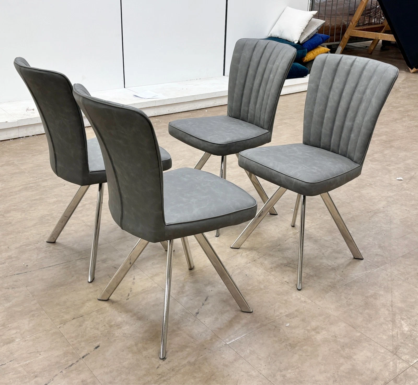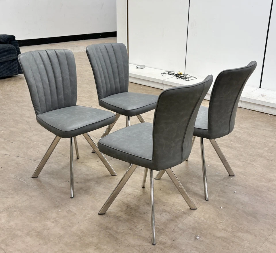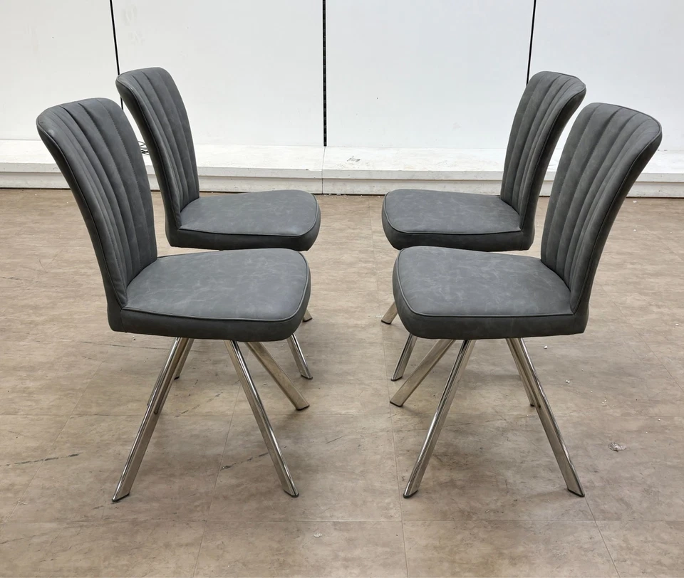 Furniture Village 'Vegas' Dark Grey Faux Leather Swivel Dining Chairs - Set of 4