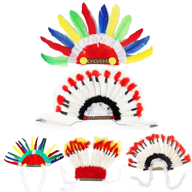 1Pcs Kids Indian Headdress Feathered Headbands Stage Show Festival Cosplay Prop