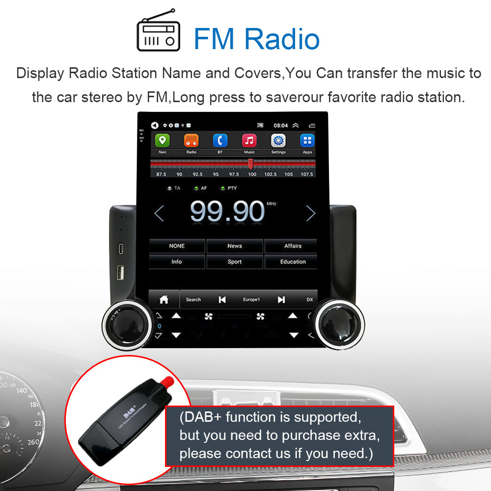 ●FM Radio: Online music you can transfer the music to the car stereo by FM to enjoy the original car stereo sound,with 18 preset stations