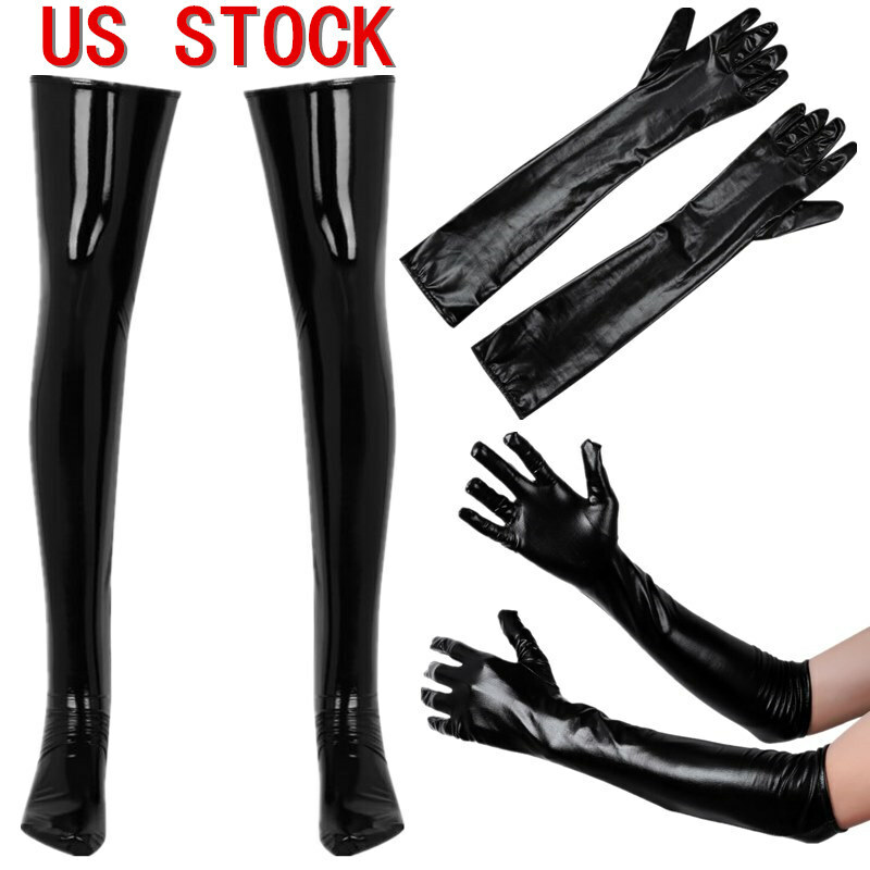 Mens Wet Look Party Lingerie Women Socks Raves Stockings Zipper PU Leather Knee