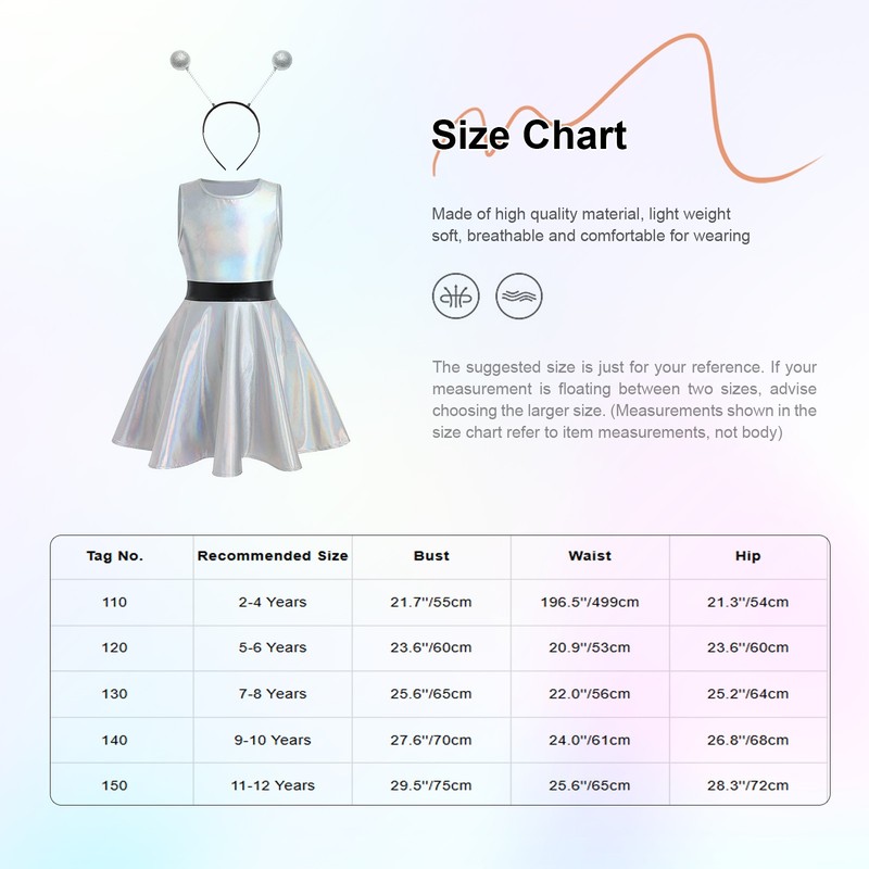 | Tag No. | Recommended Size | Dress Chest | Dress Waist | Dress Hip | Hair Hoop Length | Hair Hoop Width |