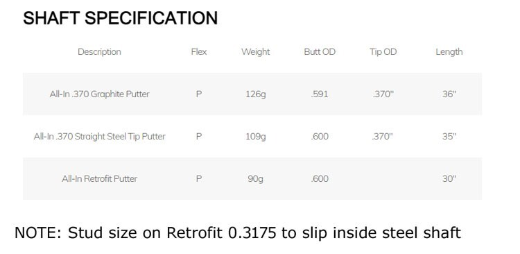 ALL IN 0.370 TIP GRAPHITE PUTTER - Fits inside .370 bore hosel type putters