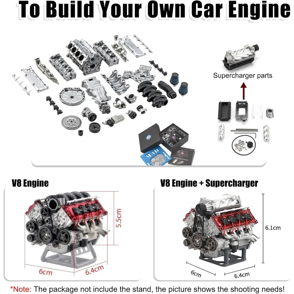 Mini V8 Engine Kits that Runs: Different from other static models, the MAD V8 engine model kit is full-featured, rich in details and extremely accurate, which can actually run after powering up. At the same time, we have taken into account the stability and reliability of operation, realizing the full bearing structure of the drive section in a miniature space. Its miniature size provides a unique opportunity to get a glimpse of the inner workings of a real V8 engine.