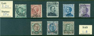 The stamps are used, in great conditions. Note the rare Sas 7 (5 Lire) and Sas 8 (10 Lire) stamps. A rare set !