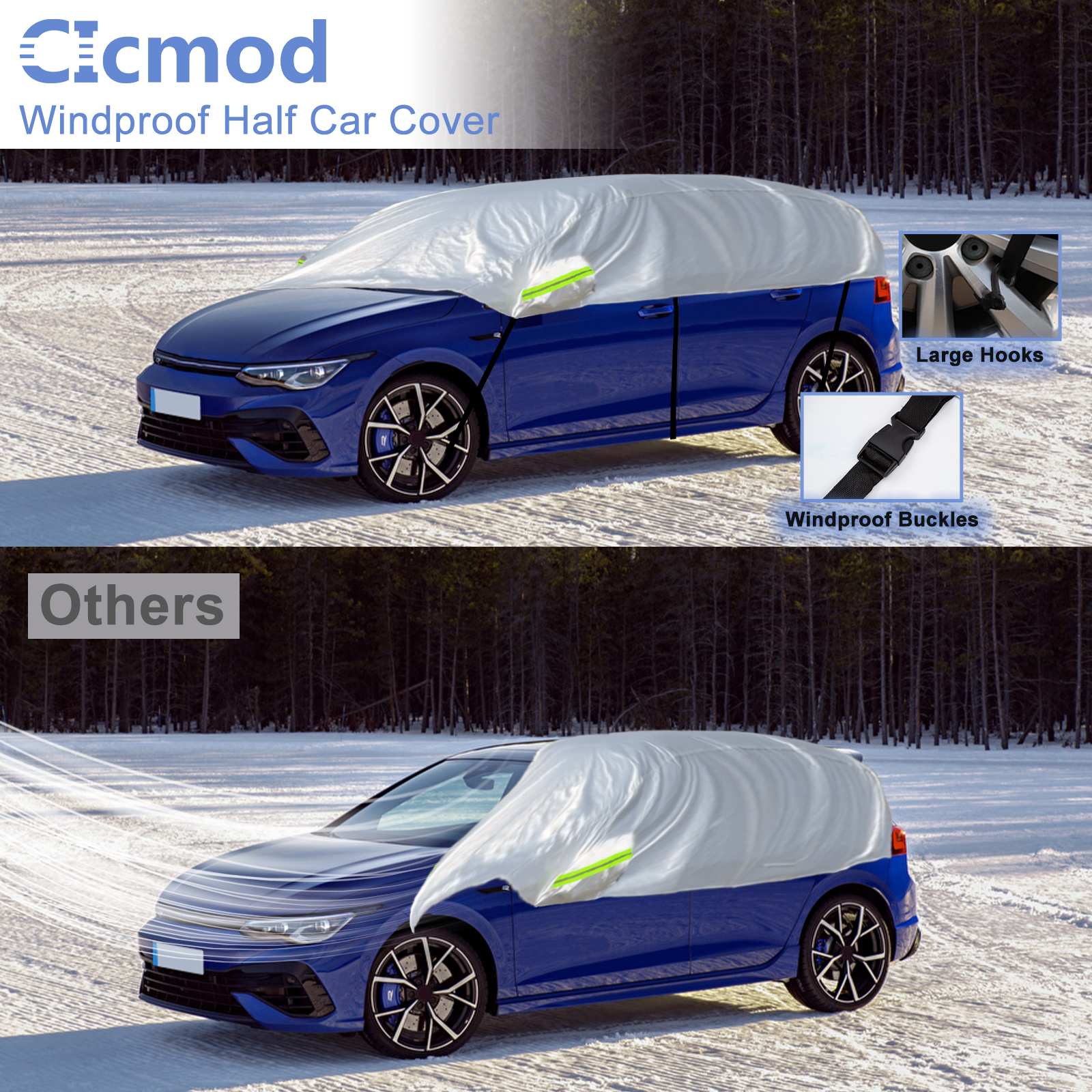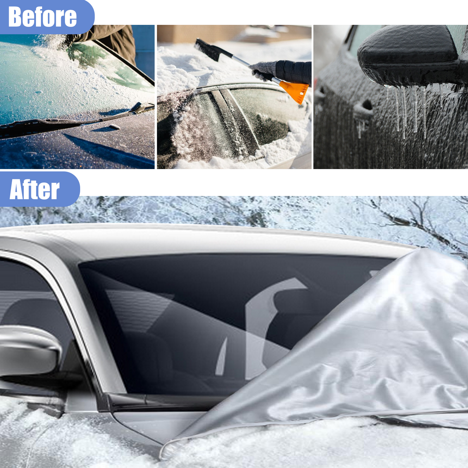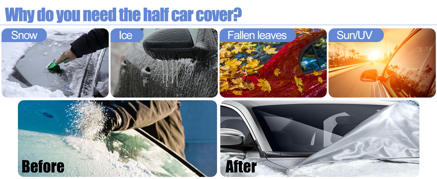 (Hinweis: Bitte überprüfen Sie die Größentabelle auf den Bildern.) Die Länge reicht aus, um die Windschutzscheibe vorne und hinten abzudecken. Vergleichen Sie mit einer Vollabdeckung. Einfache Installation bei kompakter Größe.