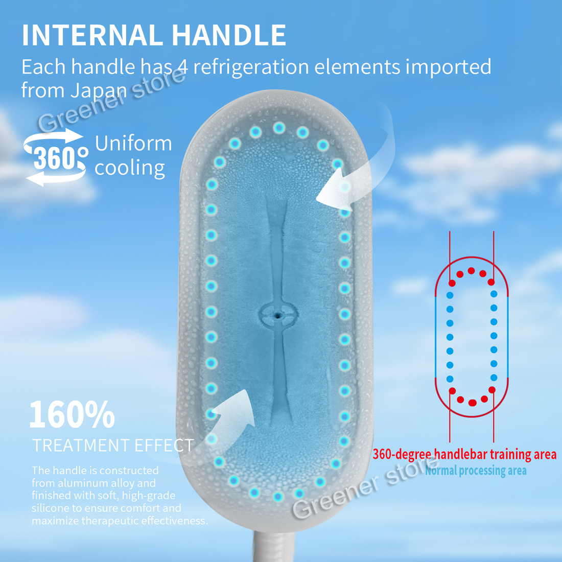 The difference between 360° all-round cooling and traditional cooling plates on both sides360° surround sound heat dissipation of Diamond ice sculpture is different from the traditional cooling method on both sides. The 360° surround cooling technology can increase the efficiency by up to 18.1%,allows cooling to the entire probe, how many area is adsorbed, how many area is treated, and the adsorbed area is frozen in a 360° omni-directional way without dead corners, resulting in more effective removal of fat cells.