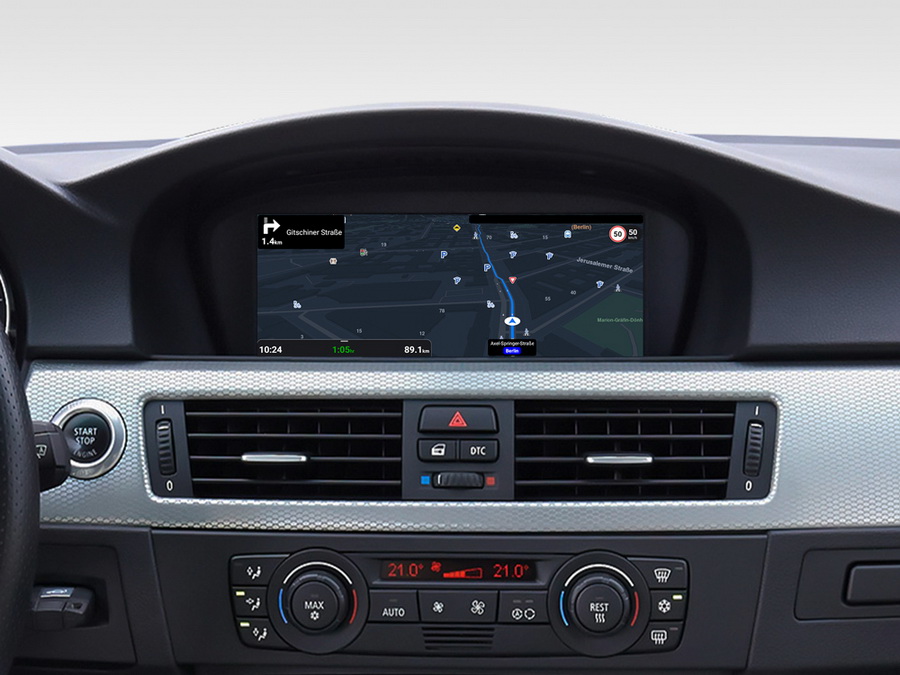 Das Dynavin-System behält die originalen BMW-Fahrzeugmenüs bei und kann weiterhin über den originalen iDrive-Knopf gesteuert werden.