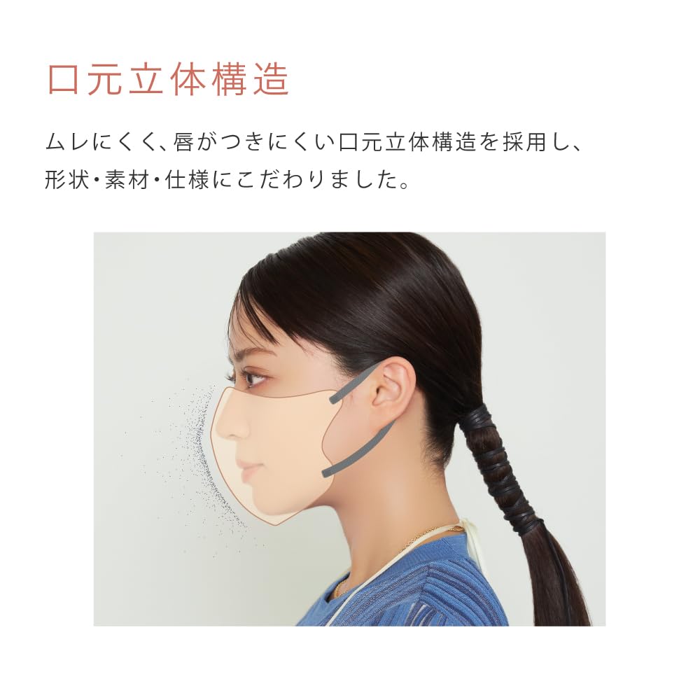 Featuring a unique three-dimensional structure that looks beautiful from the front and side, prevents stuffiness, and prevents your lips from sticking to the inside, we've paid particular attention to every aspect, from the shape to the materials and specifications.