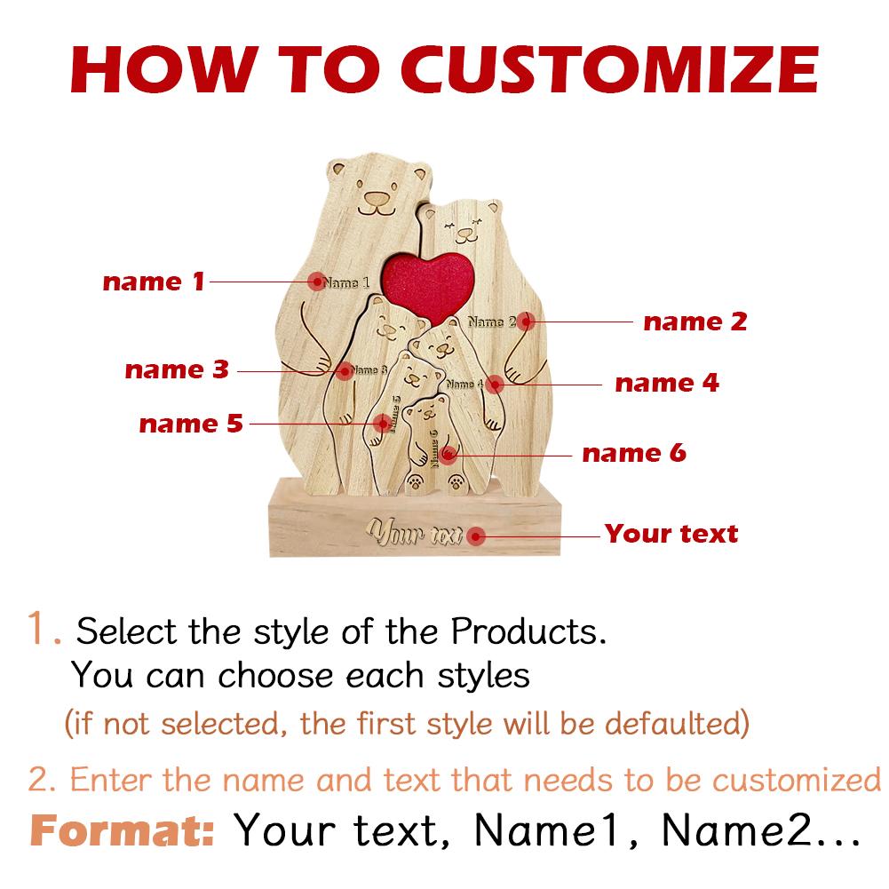 We are One, Personalized Wooden Puzzle - The Bear Wood Family Puzzle is a unique and decorative piece that can be customized with the names of your family members, making it a cherished keepsake for generations to come. Five Style animal family consisting are full of love and joy and can be a great memorable gift for Grandma or Grandpa of the big family. As you assemble the puzzle together, you'll strengthen the within your family and create lasting memories.