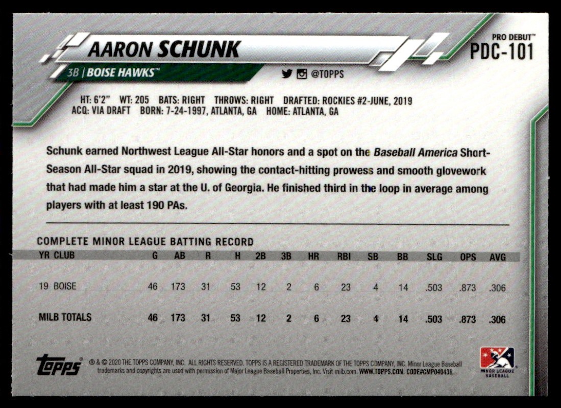 2020 Topps Pro Debut Chrome Aaron Schunk Boise Hawks #PDC-101