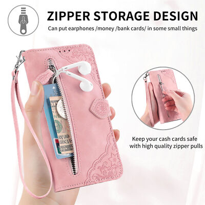 1) Wallet Card Slot: Wallet case includes 7 card holders + 1 zipper bag + 1 cash slots, hold your ID, credit cards, driver license, bills, coins and a little bit cash without problems.