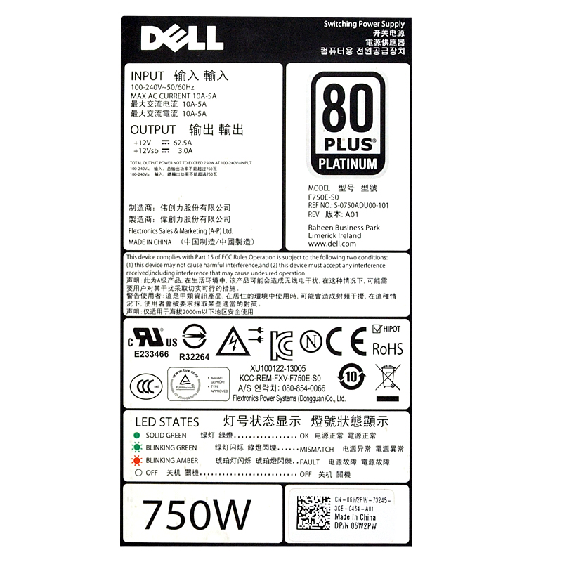 Alimentations Dell 06W2PW 750W F750E-S0 R520 R620 R720 R720XD R820 T620