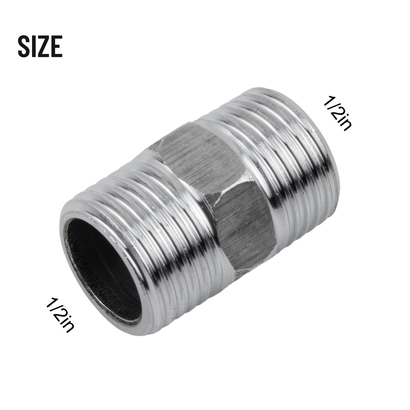 *Perfect for allowing the shower hose to reach the bath and provide clean water to rinse your hair *Created using highly chrome stainless steel, our hose connector is extremely long-lasting and will when exposed to water. *Using a common 1/2" for BSP male to the male connector means this product will fit the majority of UK shower hoses. Also suitable for most common gardens hoses. *Threads onto the ends of both shower hoses with minimal effort to quifor CKly and easily extend the range and length of your hose