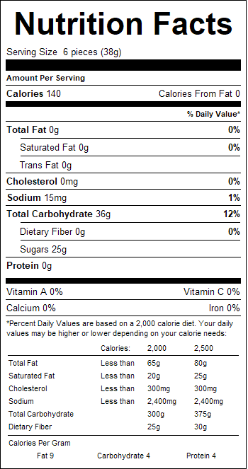Upon receiving your order, we will package your candy in a clear, heat seal bag or tamper-proof bag. We receive our candies in bulk cases from trusted candy distributors in our area. Our candies are offered to customers through our E-commerce business. Because of the volume of candy inventory our business requires to serve our customers, we have a high turn-over of candy inventory. We receive shipments of candy several days each week. Therefore, you can rest assured that your candy will be packaged from the most fresh stock available to us. Bottom Line...Beulah's Candyland guarantees your candy to be Fresh and ready to enjoy!!