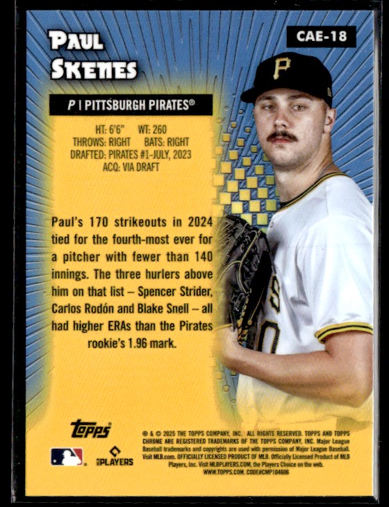 2025 Topps Chrome Green Refractor All-Etch Paul Skenes 21/99 Pittsburgh Pirates