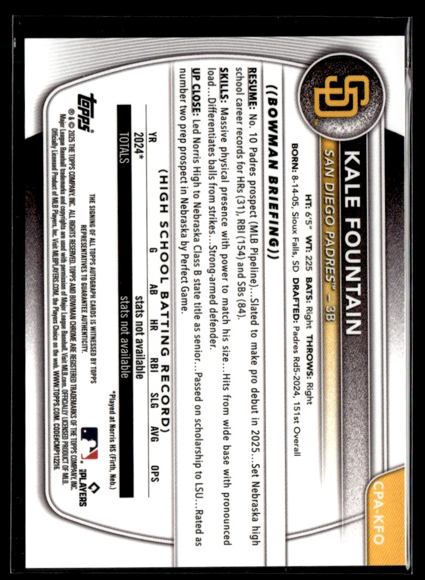 2025 Bowman Chrome Prospect Autographs Kale Fountain Auto San Diego Padres