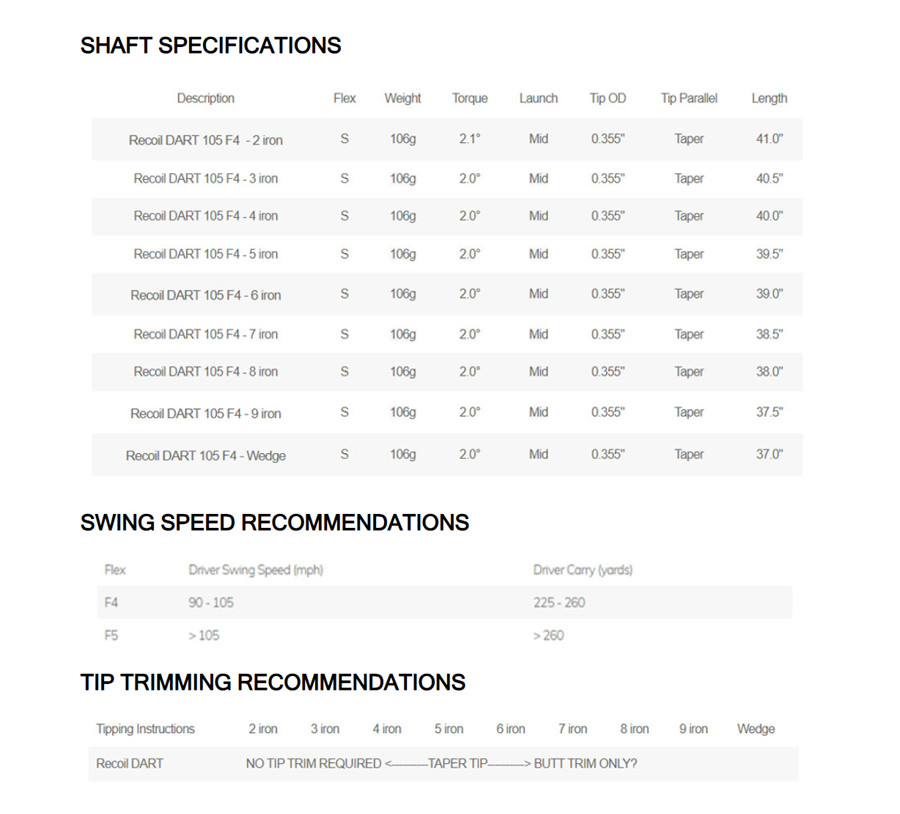 Recoil DART 65, 90 and 105 iron shafts will come as a constant weighted tapered set.
