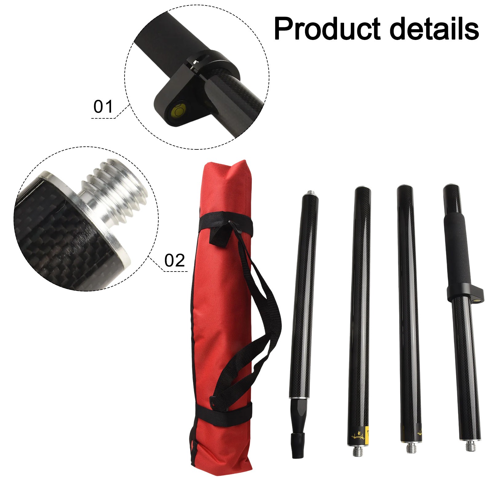 Simplified Carrying Solution Portable 1 8M Carbon Fiber Measurement Rod