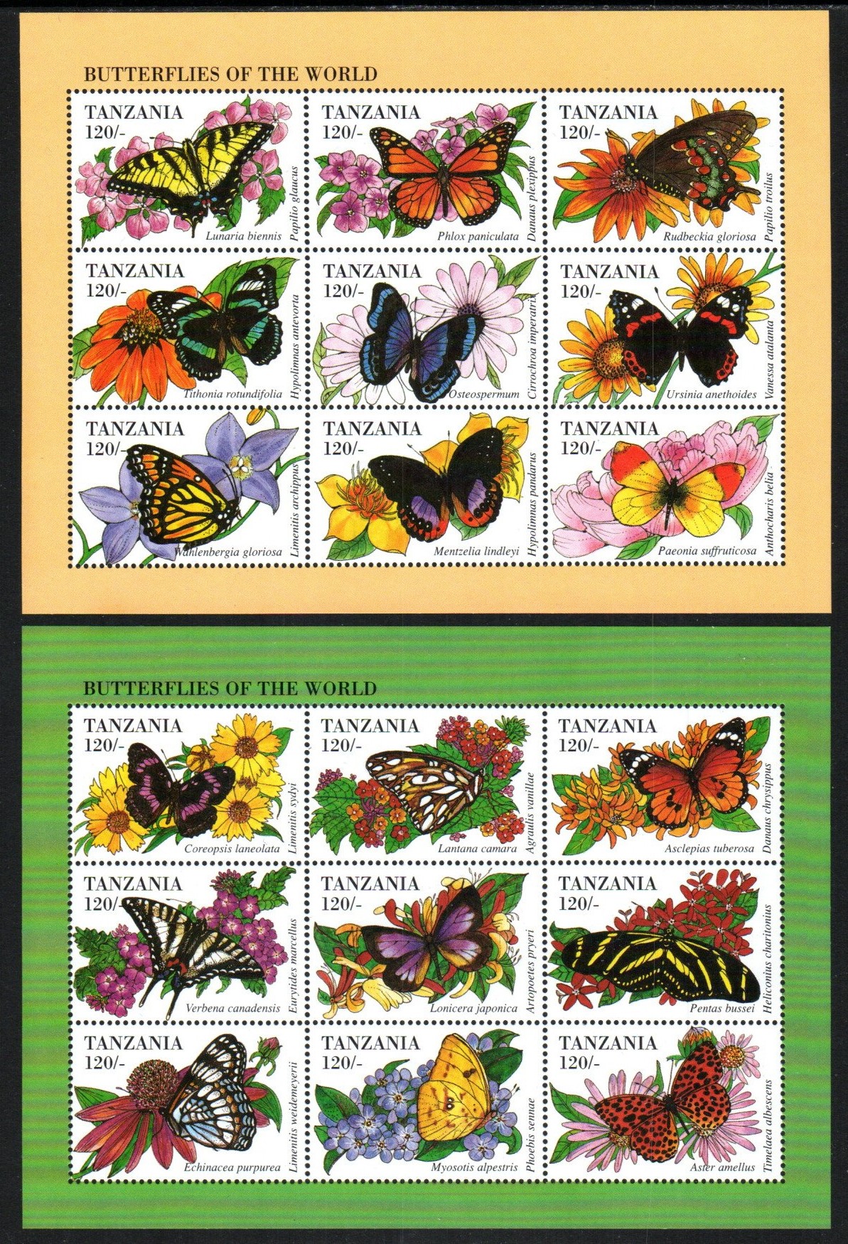 Tanzania Stamp 1243-1244 - Butterflies on flowers