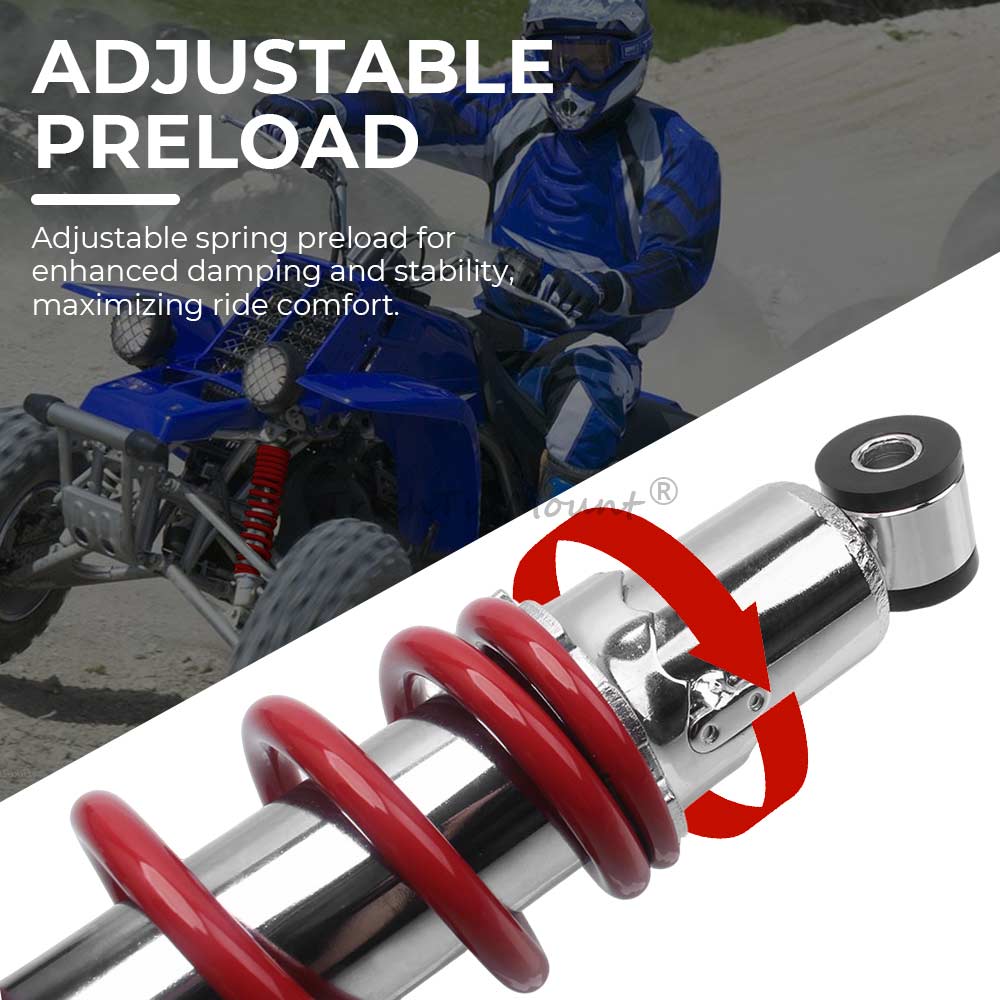 1.Adjustable Preload,Our shock absorber features spring preload adjustment, enabling precise tuning to enhance shock absorption,