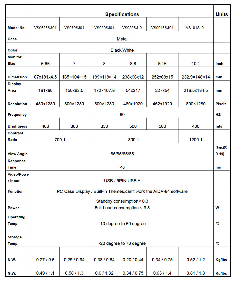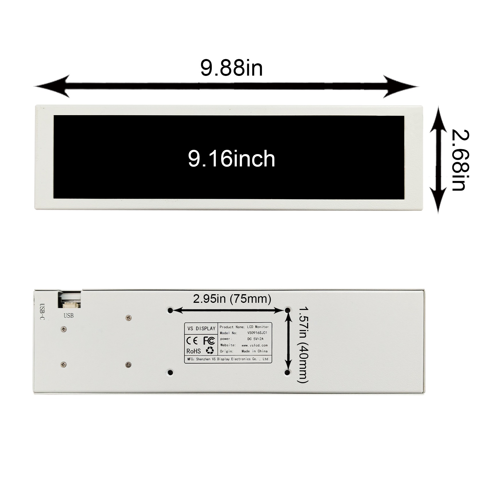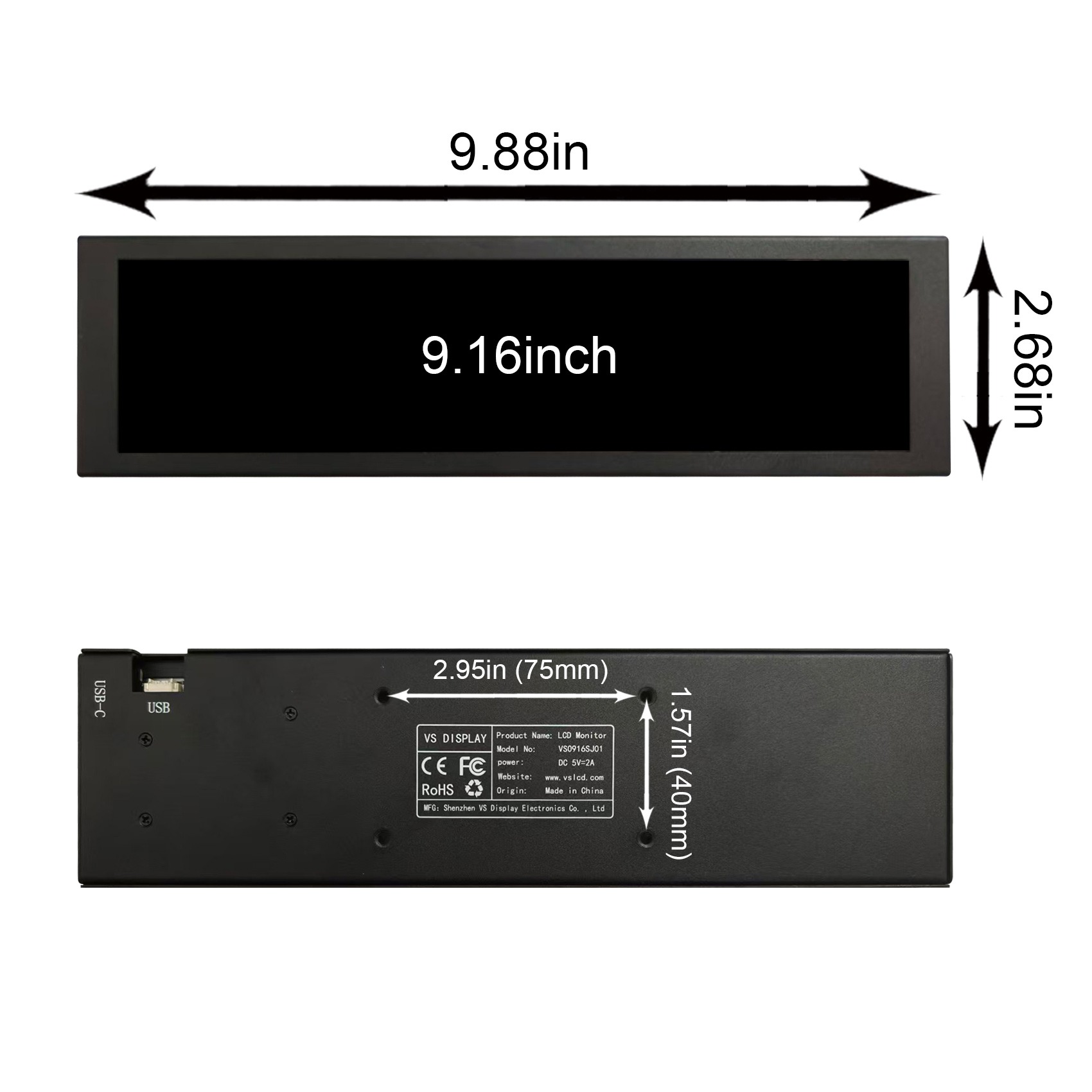 1× 9.16inch 1920x462 VS0916SJ01 LCD Monitor