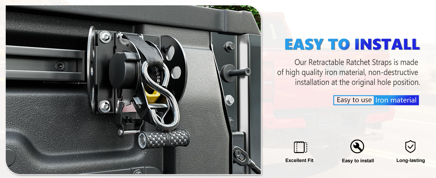 4.Easy to Install:Our retractable straps compatible with 2022 2023 2024 2025 Ford Maverick is easy to install.You don't need to drill holes in the car. We will provide the installation instructions, you could also scan the QR code on the instructions to view the installation video.