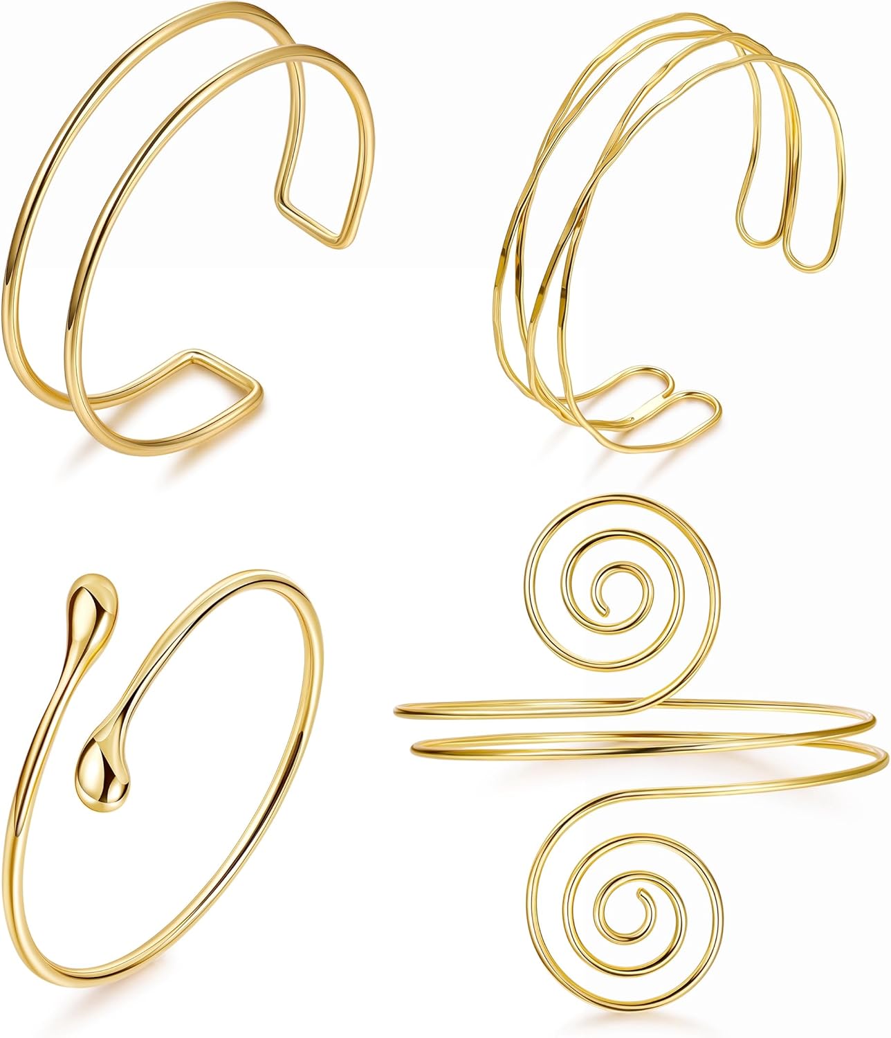 4PCS Upper Arm Cuff Bracelets for Women Gold Silver Bangle gold A