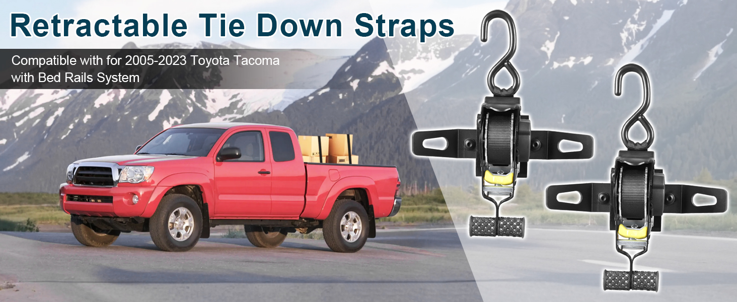 | 2-Pack Retractable Ratchet Tie-Down Straps S Hook for Toyota Tacoma 2005-2023 |