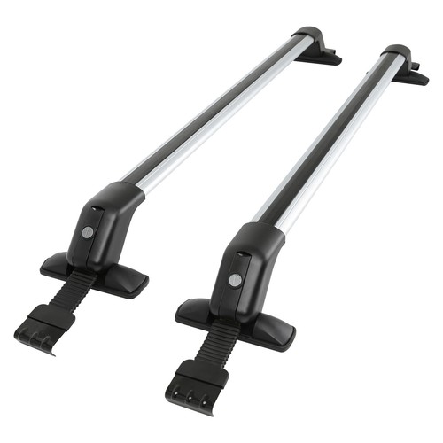 165LBS LOAD CAPACITY PER BAR: Can be mounted on most vehicles which the distance between the rain grooves is between 109cm-114cm/42.91in-44.88in to carry bike, kayak racks, cargo frame, cargo boxes, snowboard, surfboard, etc.