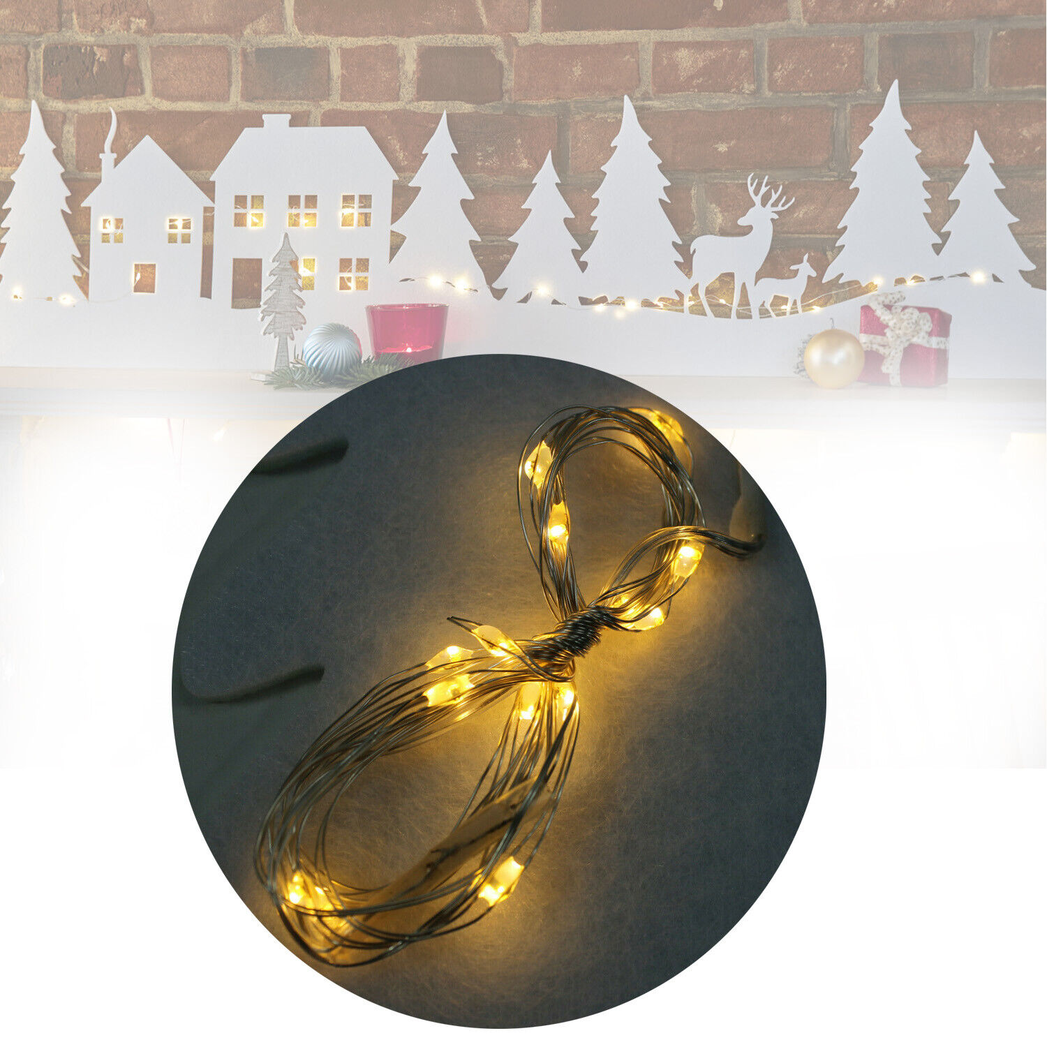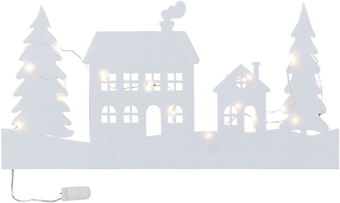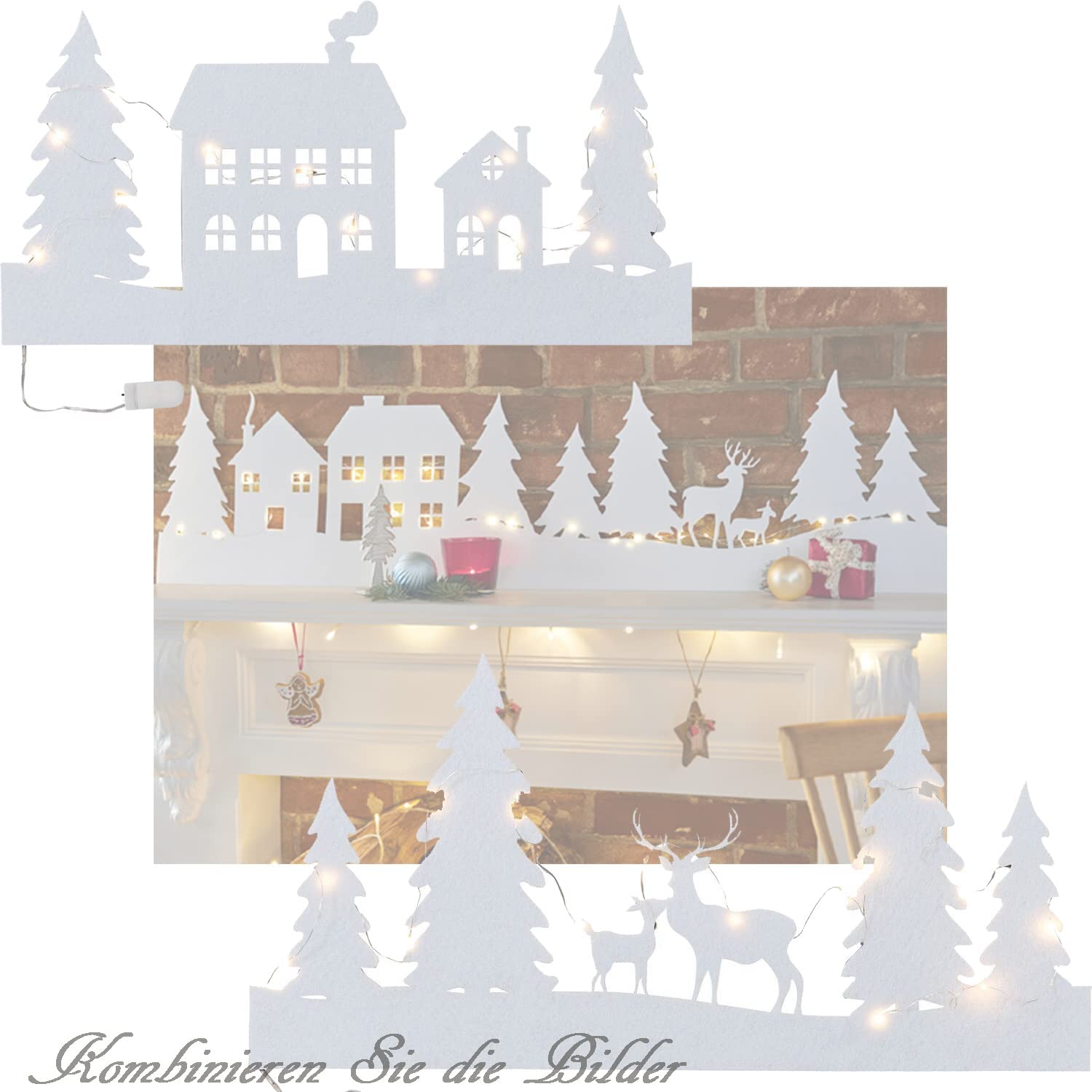 Wunderschönes Fensterbild mit den Maßen (H) 30 x (B) 60cm wird mit 15 warmweißen (2200K) Micro LEDs auf silbernem Draht zur stilvollen Dekoration, die gemütliches Winterfeeling aufkommen lässt.