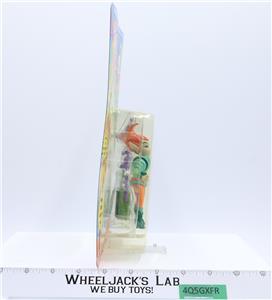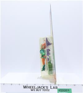 Card: The card has heavy wear. There's a large portion of the card missing on the bottom right side. The card lies mostly flat, but there is some creasing on the back.