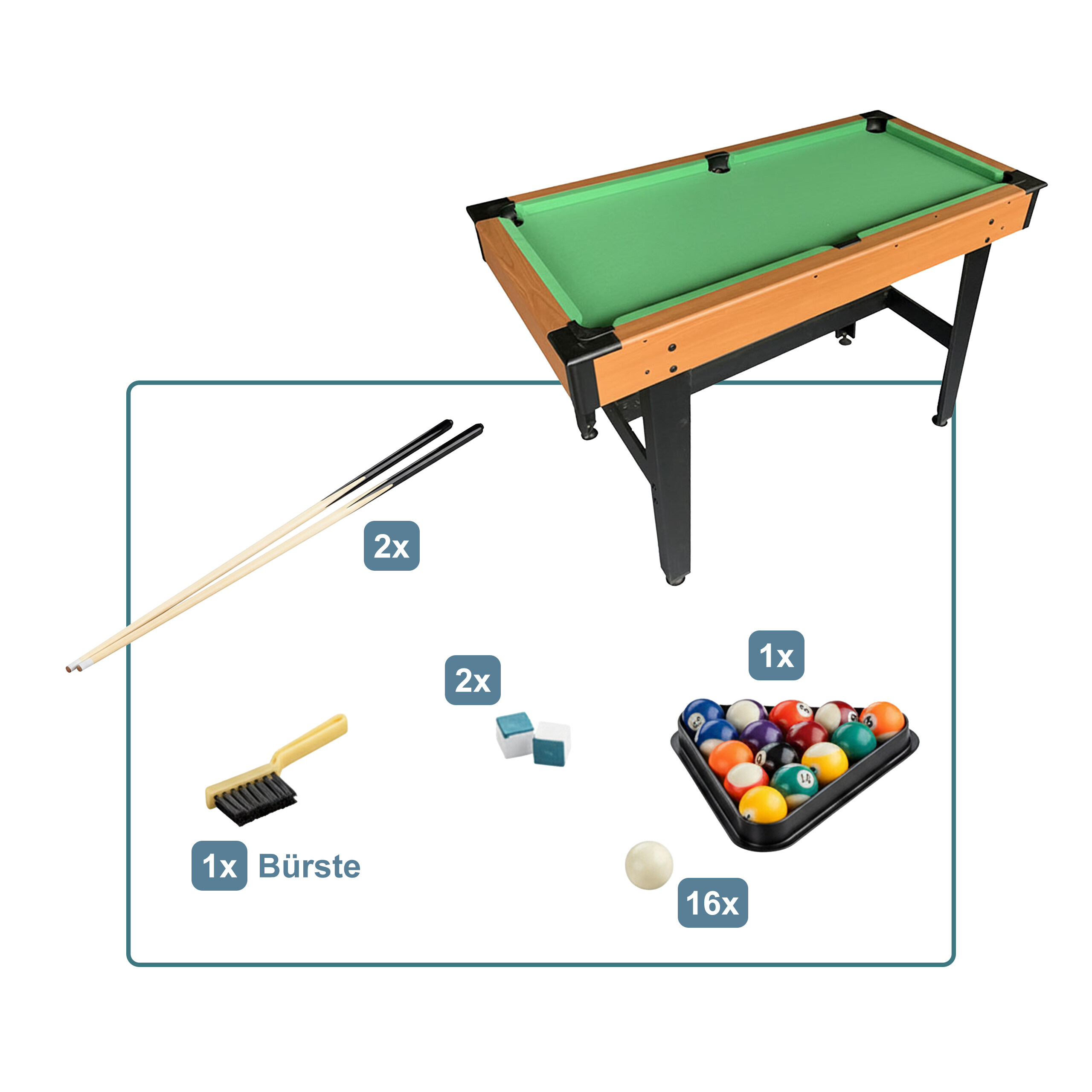 - Zubehör: Billard-Spiel mit 2 Queues, 16 Kugeln, 2x Kreide, Triangle und Bürste - Sofort loslegen