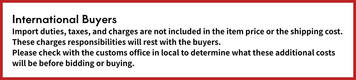 Tutti gli articoli vengono inviati dal Giappone. Il pacco con numero di tracking è coperto dall'assicurazione sulla spedizione. Nota bene: agli articoli potrebbero essere richiesti dazi all'importazione, tasse e costi aggiuntivi. Il destinatario della spedizione è l'importatore registrato, che è responsabile di tutte le tasse di importazione nel paese di destinazione. In caso di domande su dazi e tasse di importazione, contattare l'ufficio doganale locale prima di acquistare e fare offerte.