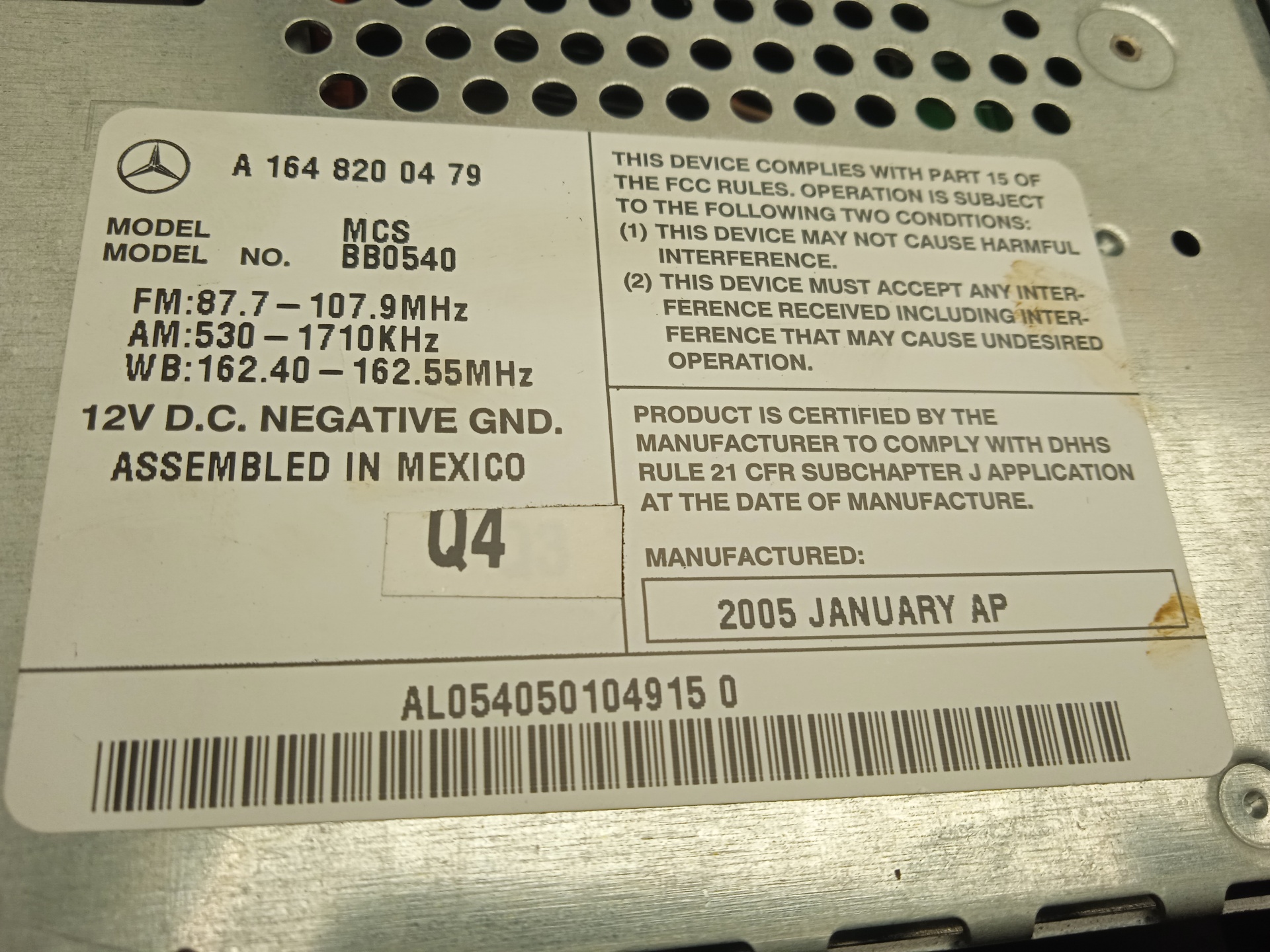 A1648200479 AUDIOSYSTEM / RADIO-CD FÜR MERCEDES-BENZ CLASE M W164 * 698 698317