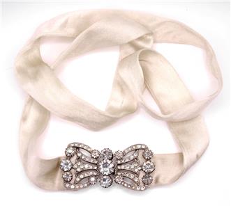On an ivory satin sash/belt, originally from a 1920s wedding dress