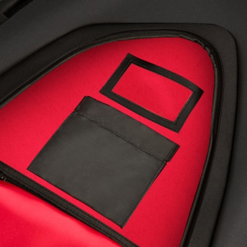 Die Ausstattung umfasst eine Innentasche für Saiten, eine feste Werkzeugtasche sowie eine große Fronttasche mit integriertem Visitenkartenfenster. Der zweiteilige Griff und die ergonomischen Air-Mesh-Rucksackgurte sind leicht verstellbar und gewährleisten maximalen Tragekomfort.
