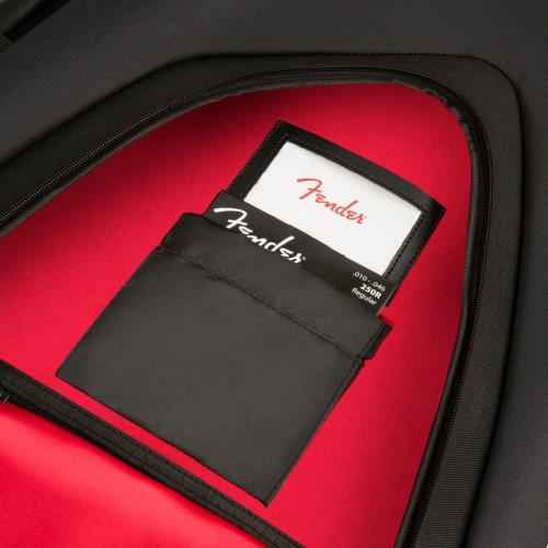 Praktischer Stauraum ist durch die große Fronttasche mit Visitenkartenfenster und einer festen Werkzeugtasche gegeben, in der Sie Zubehör wie Saiten oder Plektren sicher verstauen können. Damit ist die Fender FE610 Gigbag ein idealer Begleiter für Musiker, die unterwegs Wert auf Schutz und Komfort legen.